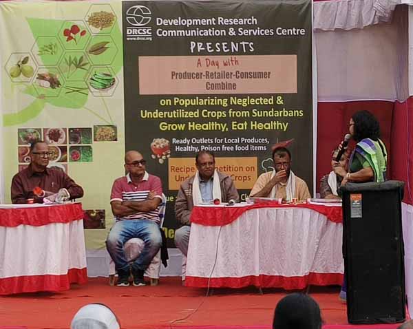 Development Research Communication and Services Centre (DRCSC) has organized a two-day (3-4 December, 2022) exhibition on Neglected and Underutilized Crops and Agro-Products at Bibek Nagar Youth Association play ground, Jadavpur, Kolkata. The main objective of the exhibition was to introduce neglected and underutilized crops and to promote chemical free, safe, nutritious food and to give a platform of interaction between producer, retailer and consumer. The exhibition was inaugurated by local MLA Sri Debabrata Majumder and Councillor Sri Tarakeswar Chatterjee and Sri Dilip Kr Sarkar (Secretary DRCSC) and other honourable guests were present in the opening ceremony. Honb'le Agricultural Minister Sri Shobhon Deb Chatterjee visited the fair and given a valuable speech. There were 20 outlets of healthy, chemical free vegetables, indigenous rice varieties, pulses, seeds, food items, handicrafts etc., various cultural programmes was organized in the evening. |