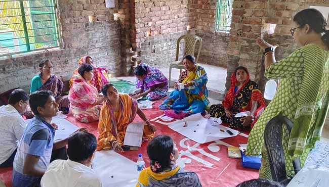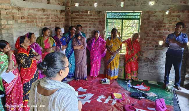 Orientation on Gender, leadership and tool bank done at Ramganga, Patharpratima on 14 and 15 June 2023 with project staffs from both clusters. Discussion done on strategic and practical gender needs, gender inclusiveness focusing on awareness, participation and empowerment. Participants get more clarity on gender issues and have opportunity for follow up of previous year activities. Discussion was also done on identification of tools for women drudgery reduction. The orientation was facilitated by Ms.AvaniRawal, Programme Officer, SWISSAID, India. |